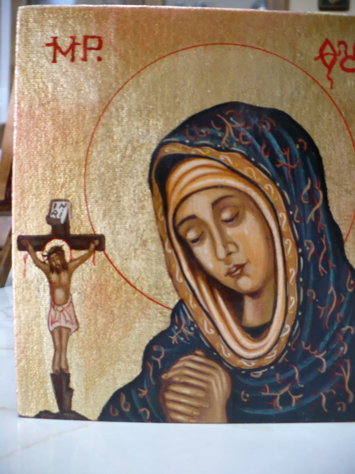 fir aurit,fond in relief ,fata,maini si aripi pictate in tempera .